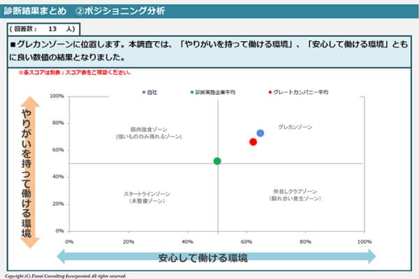 - 船井総研が実施する、【組織力診断】の結果、安心して働け、やりがいのある環境だという結果もいただきました。