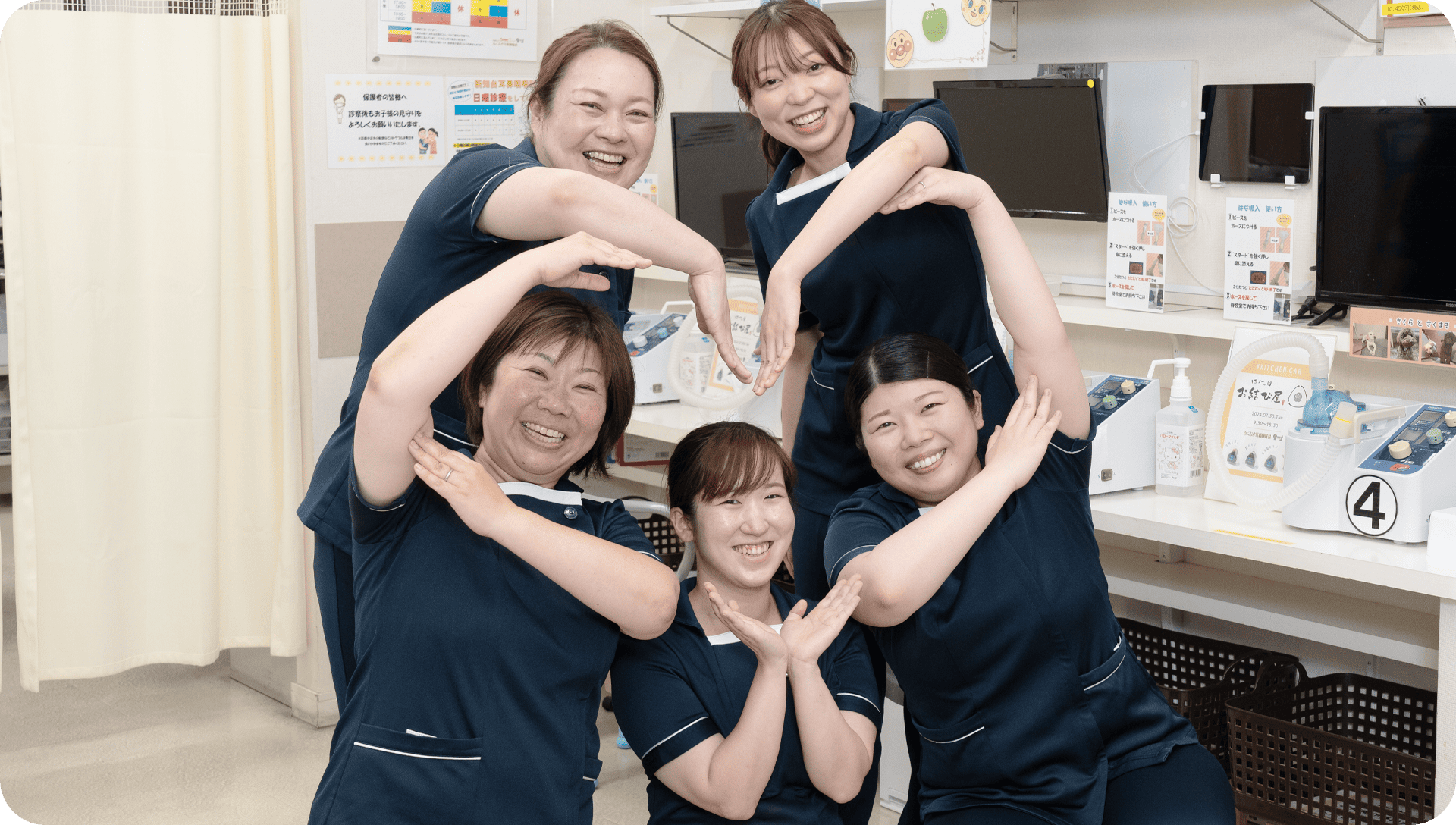 - 託児室(とみよし耳鼻科・皮フ科クリニック)があり、小さなお子様をお持ちの方も働きやすい環境